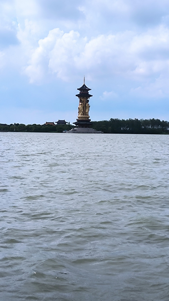 湖中央树立着一座三面佛,保佑普罗大众平安。