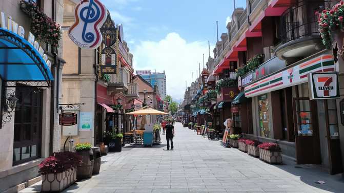 烟台市区仿古街,知名的张裕葡萄酒公司以及孙中山先生曾经下榻的饭店。