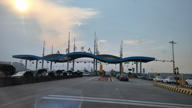 离开青岛,车经胶州湾大桥返程,结束一周的黄海海滨游。