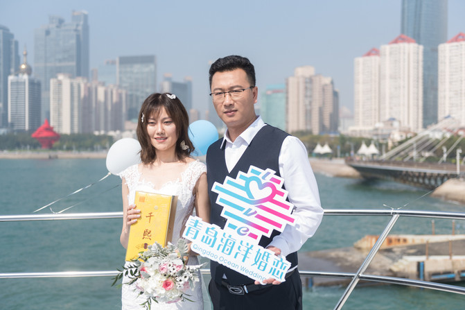 在青岛海洋婚恋文化周活动上,举办了海上集体婚礼,非常特别。