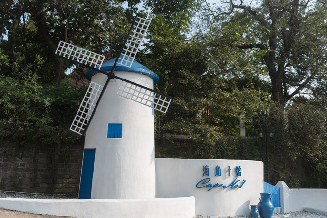 与宋公馆只隔着一条马路,海角七号是山东省最美的民宿酒店之一。蓝白色调的风车,很容易让人联想到希腊的圣托里尼。