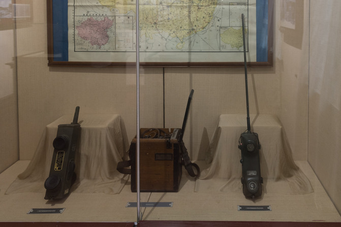 在邮电博物馆内,展示了许多古老的电话机,这样的“大哥大”最早是用于军事通信的。