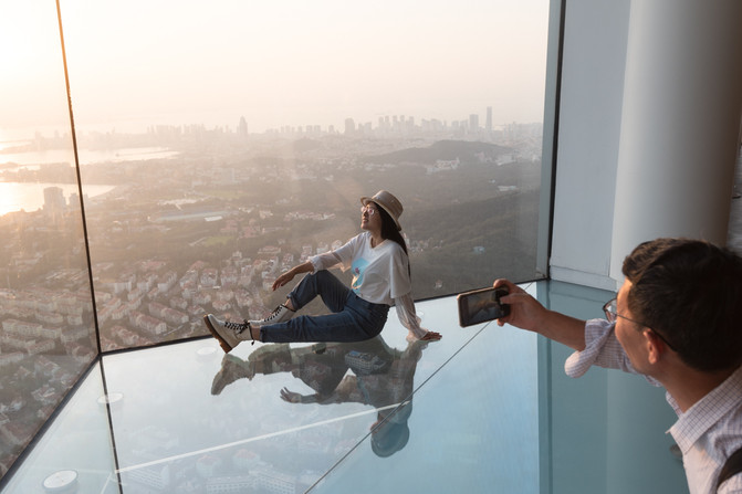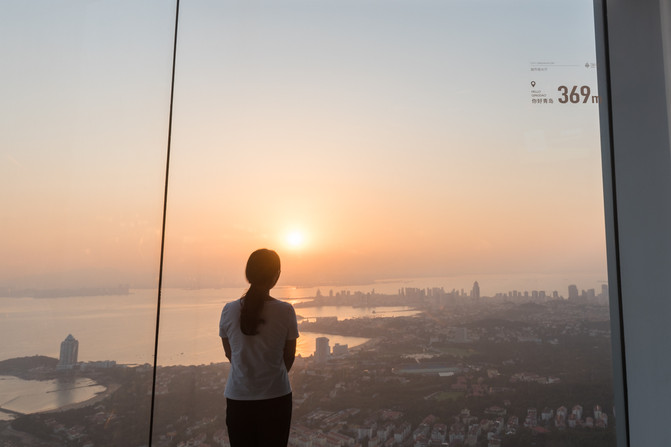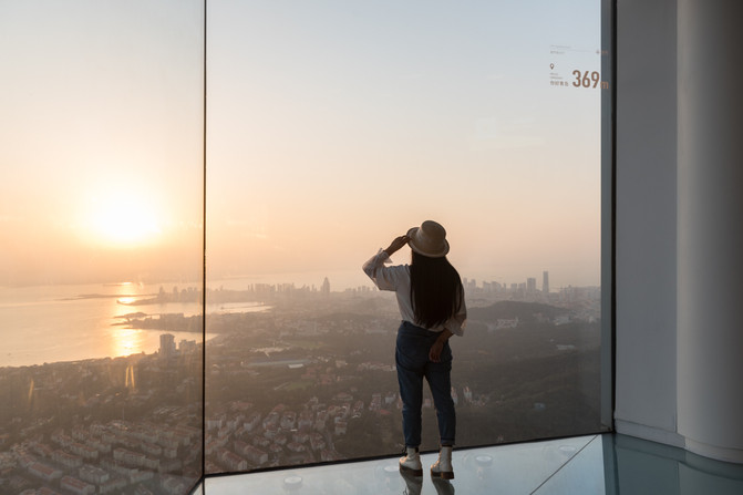 青岛城市观光厅位于369米的青岛最高楼海天中心81层,可以俯瞰青岛整座城市风光,是不可多得的观光游览最佳打卡地之一。