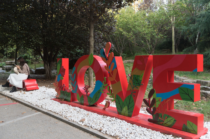 最近青岛太平角公园火了,原因是公园中的一条路画上了许多爱情宣言和符号,被称为爱心小路。