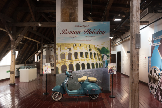 这里也搭建了不少经典电影的场景,供游客拍照。如《罗马假日》中的场景,小摩托车特别适合情侣拍照。
