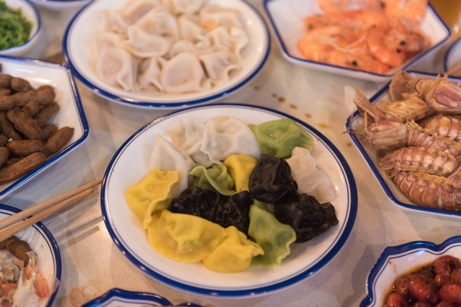 当然还有特色的海鲜饺子。海边人最常吃的鲅鱼水饺只是基础款,各种海鲜几乎都可以被包进饺子里,常见的还有墨鱼水饺、黄花鱼水饺等,每一种口感不同,点一盘全家福可以同时品尝好几种海鲜水饺。