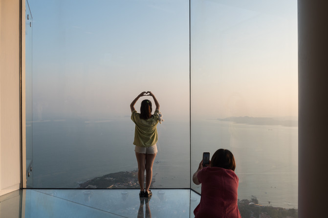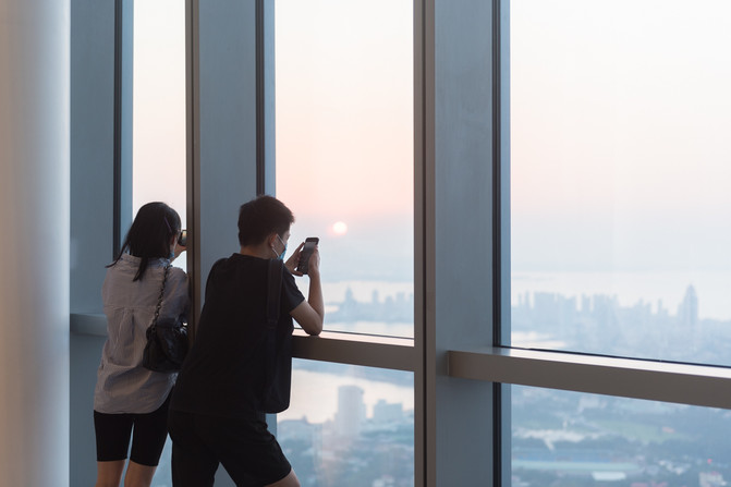 乘坐专用的观光电梯直达81层,这一层都是观光平台,同时也是网红拍照打卡地。