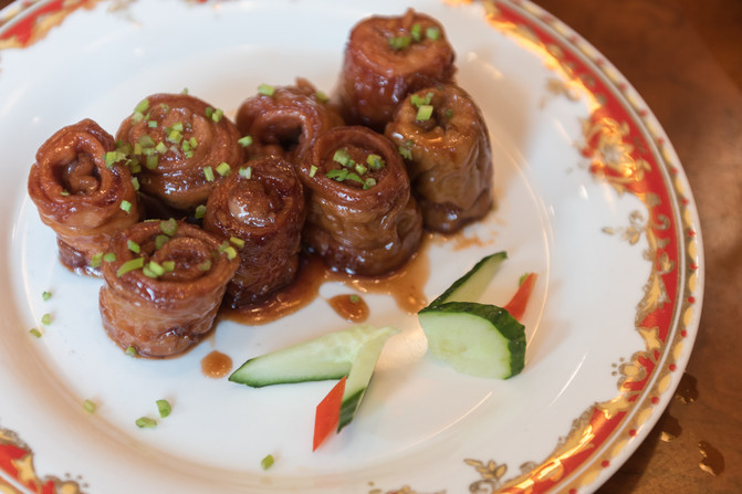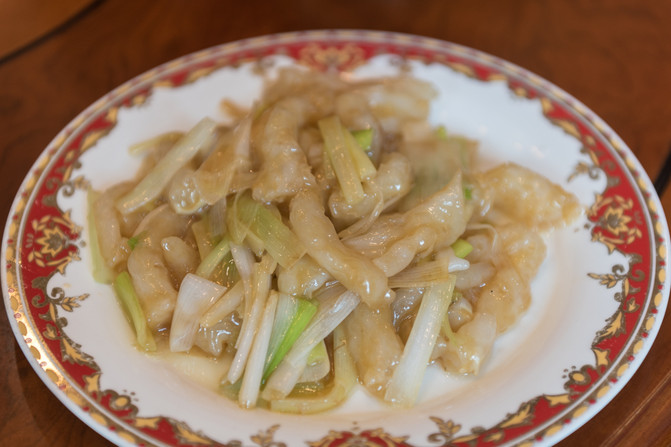 海鲜是青岛美食的重要部分,春和楼作为一家百年老字号,除了保留传统味道以外,也对菜品进行了创新。海螺切成薄片,味道清淡鲜美,品尝到的是海螺本身的味道。