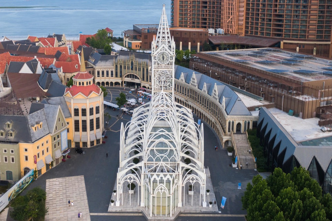 50米的钟楼尖塔是红树林度假世界