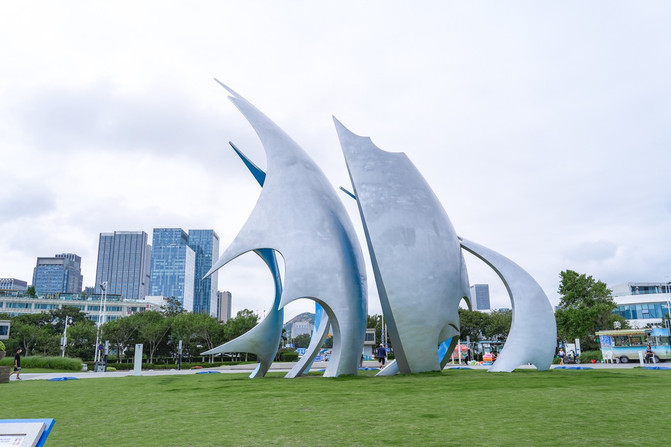 隐式喷泉、点阵喷泉、《五月的风》雕塑、海上百米喷泉等