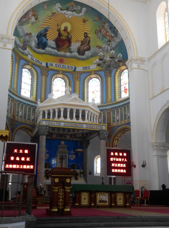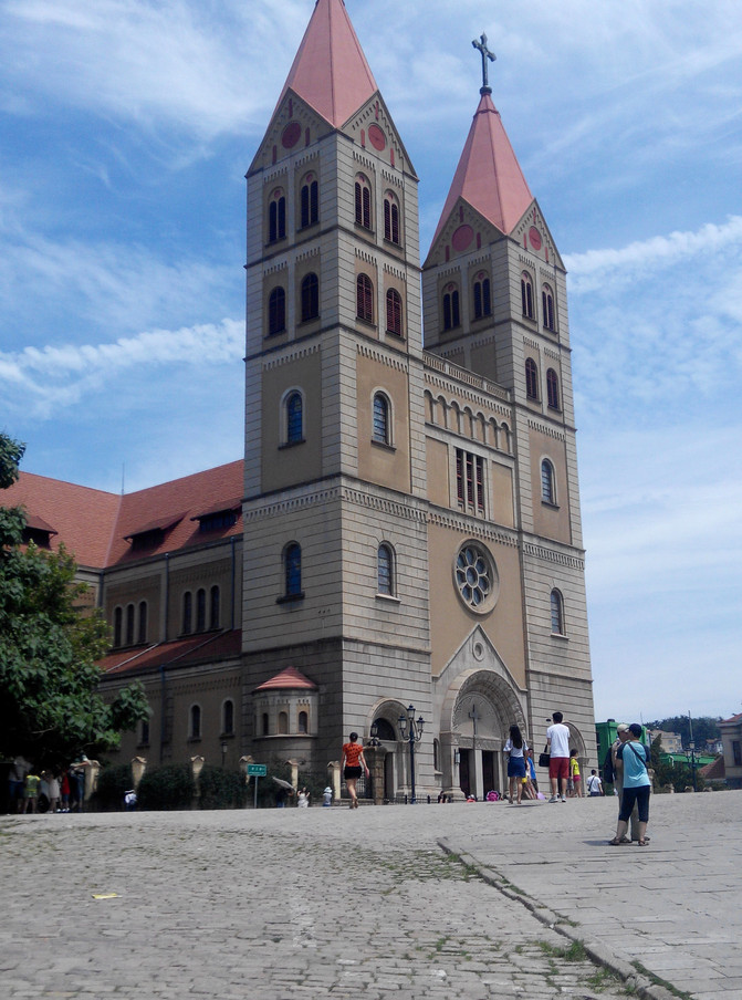 沿着江苏路向北走不远就是著名的基督教堂,这一座教堂造型很美如同一座城堡,经常出现在青岛的宣传画上。