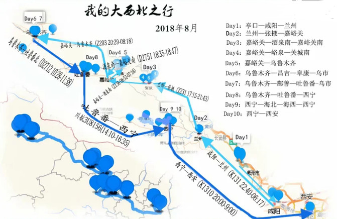 咸阳出发,一路沿着西北方向,经过河西走廊部分地方,然后西宁结束,12天时间,行程8200多公里。