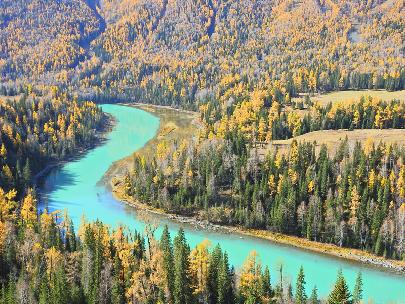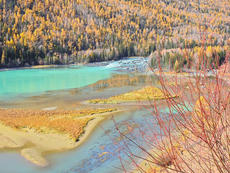 “神仙湾”是喀纳斯湖在山涧低缓处形成的一处浅滩,喀纳斯河的水在此展示出了不同的颜色