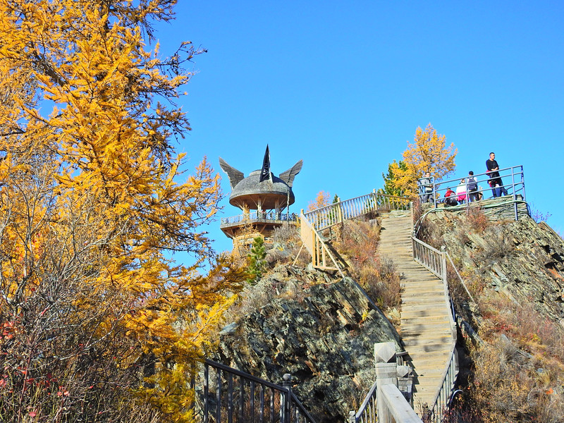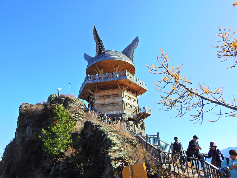 观鱼台建于海拔2030米的哈拉开特(蒙古语意为"骆驼峰)"山顶上,与湖面的垂直落差达600多米,因处于观察"湖怪"的最佳位置,故得名观鱼亭。观鱼亭是喀纳斯景点中的极品,是唯一一个能驻足饱览喀纳斯美景的最佳平台。