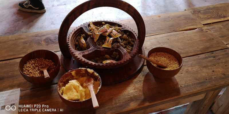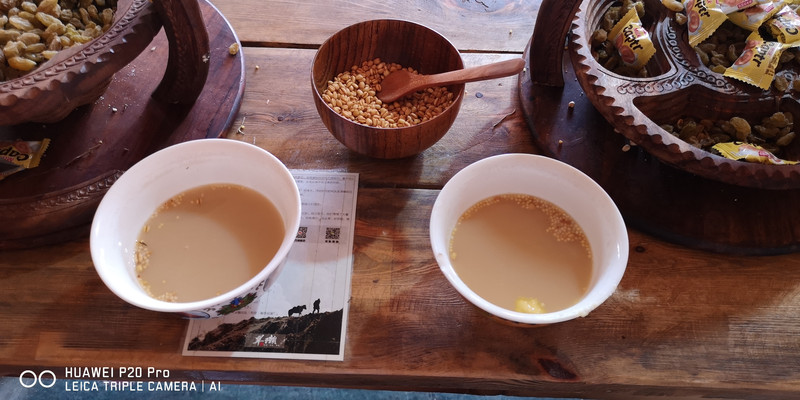 主人已经摆好各种食品以及端上了奶茶