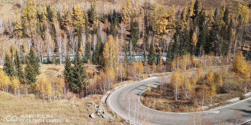 登喀纳斯的观鱼台,乘坐的摆渡车一直可以沿着这样的盘山小道拉着我们上到半山腰