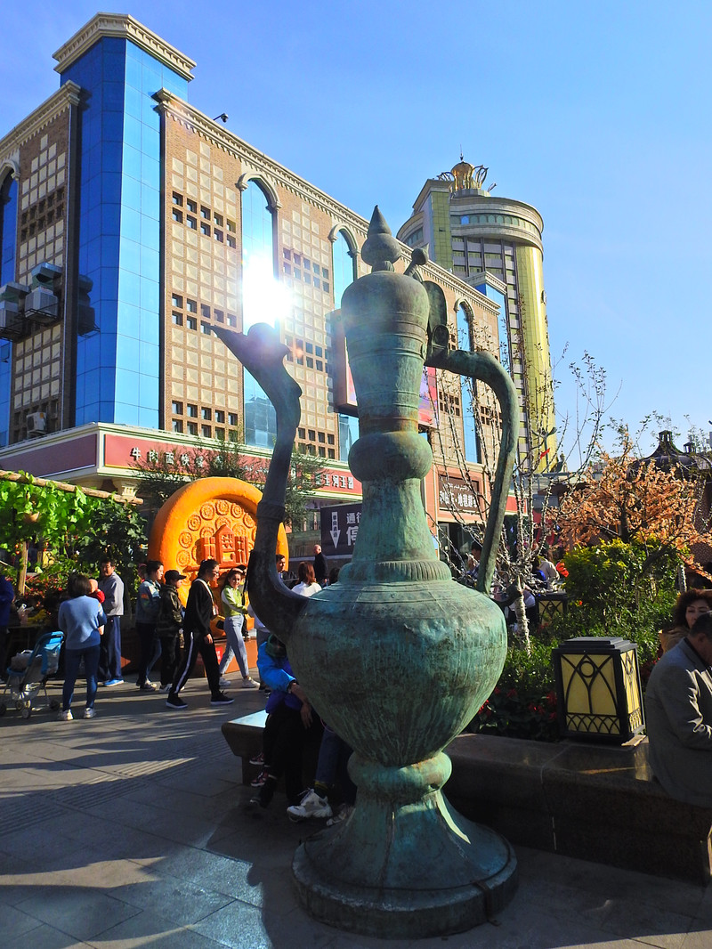 我们是十月四日从北京乘坐CA1275航班前往乌鲁木齐。在下午两点入住酒店,稍事休息后马上前往国际大巴扎。国际大巴扎是一处具有浓郁的伊斯兰建筑风格,在涵盖了建筑的功能性和时代感的基础上,重现了古丝绸之路的繁华,集中体现了浓郁西域民族特色和地域文化。