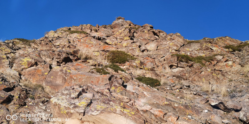 但是沿途的景致还是蛮有些有意思的。看看照片中的红色岩砂石上含有大量黄色和白色的物质,这些也都是一些矿物质