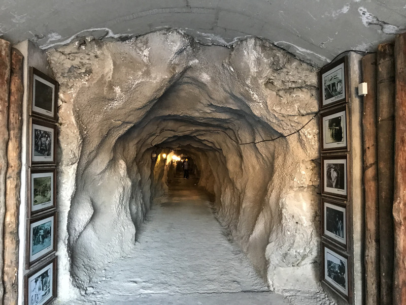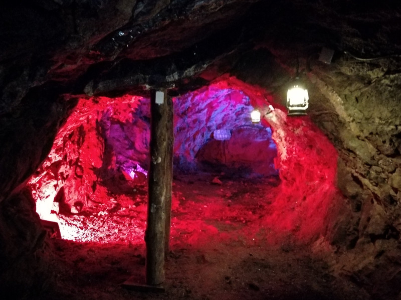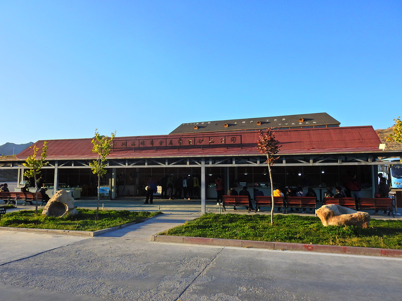 参观完三号矿坑后就到对面,图示中的候车处,乘坐摆渡车前往“矿洞”