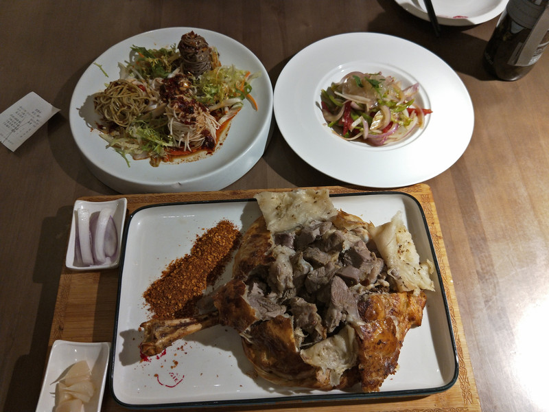 逛完了大巴扎的一角,已是饥肠辘辘了。就直接去了网红的新疆特色餐馆“石榴红了”