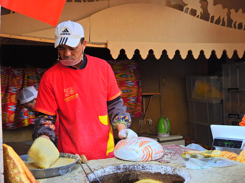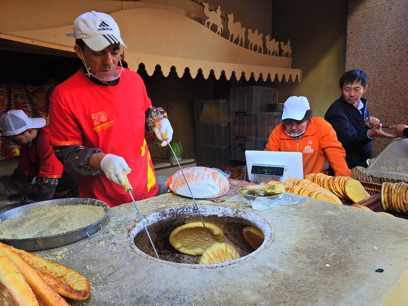 “吃货”首先当然先来品尝西域风格的餐饮。一进大门,映入眼帘就是新疆的特色“囊””和“烤羊肉串”