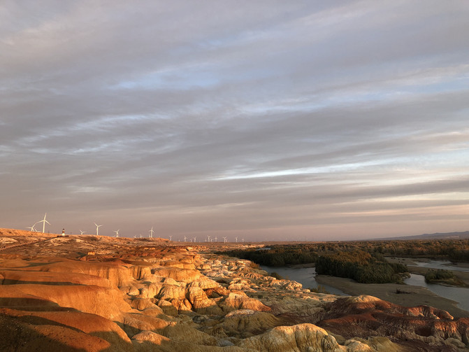 一路向北,穿越准噶尔盆地,这一段600多公里,除了漫长更是一路的好风光,一望无际的戈壁滩、盐碱滩还有盆地四周星罗棋布的绿洲.....,傍晚时分到达可可苏里湖,戈壁滩上一片水草丰美的地方,夕阳下很美!