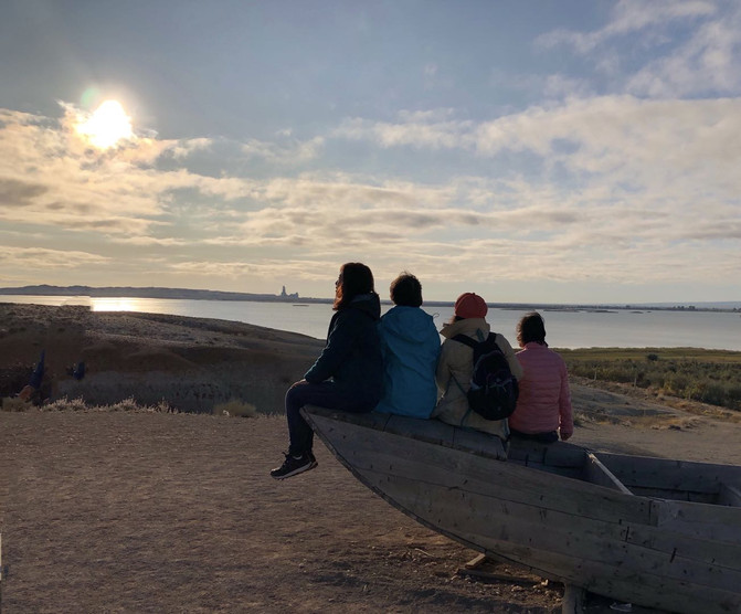 一早酒店出发,告别美丽的可可托海一路奔向喀纳斯北部门户——布尔津,入住酒店,国庆正日午餐邀请了包车司机,一行人庆国庆隆重吃了冷水狗鱼。傍晚前往【五彩滩】,欣赏日落。