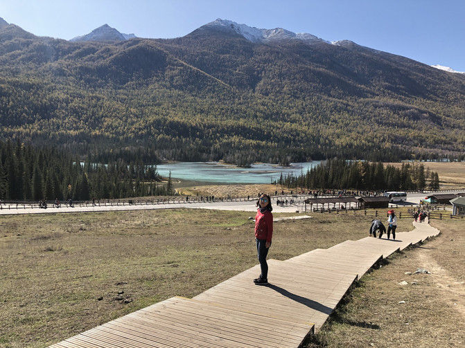一大早八点司机就送我们去喀纳斯景区,几分钟车程就到了,然后搭区间车直奔换乘中心购买前往观鱼亭的景交车,天冷售票处要等到霜化了才开售,赶紧先游轮喀纳斯湖,再往观鱼台!景交车返回喀纳斯换乘中心,找了一家餐厅午饭并修整,然后神仙湾,月亮湾、卧龙湾,月亮湾卧龙湾徒步栈道氧吧润肺一级棒!这一天行程可是相当的紧,分秒必争必须滴!
