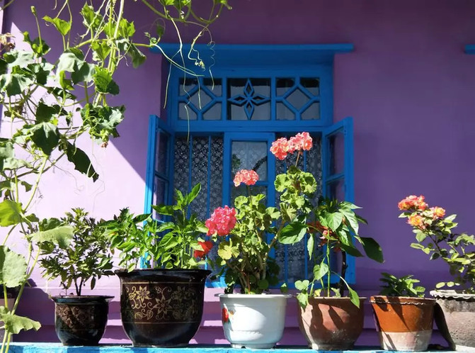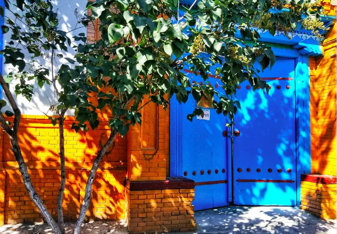 看到新疆是蓝色的,门舍的蓝,天空的蓝,西梅紫的发蓝,手工冰淇淋光影下的蓝,以及人群中的一抹蓝,这里首次感受到了新疆舞蹈的奔放与热情,在吐达洪巴依大院,这里的建筑距今已有85年历史。依据当年鼎盛的时期巴依大院的原貌进行恢复。复建面积为500平米。共有房间24间。院子里有西梅落地成熟,颗颗透亮。