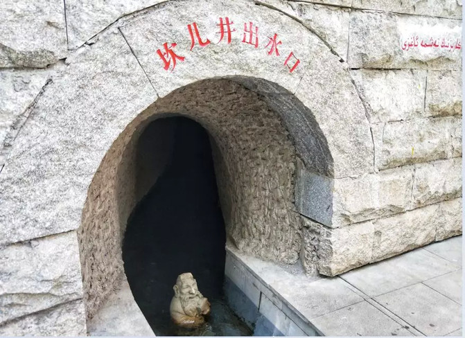 坎儿井博物馆,看到手摇辘轳,原始的坎儿井升降设备。依靠人力从井底将土提到地面。劳动强度大。适用于竖井深度在十米以下的施工地面。井下深邃且凉快,暗渠流出的水,经过自然过滤,形成天然矿泉水,富含矿物质。使吐鲁番素有中国长寿之乡的美名,舀一瓢清澈见人的井水,共饮清凉。