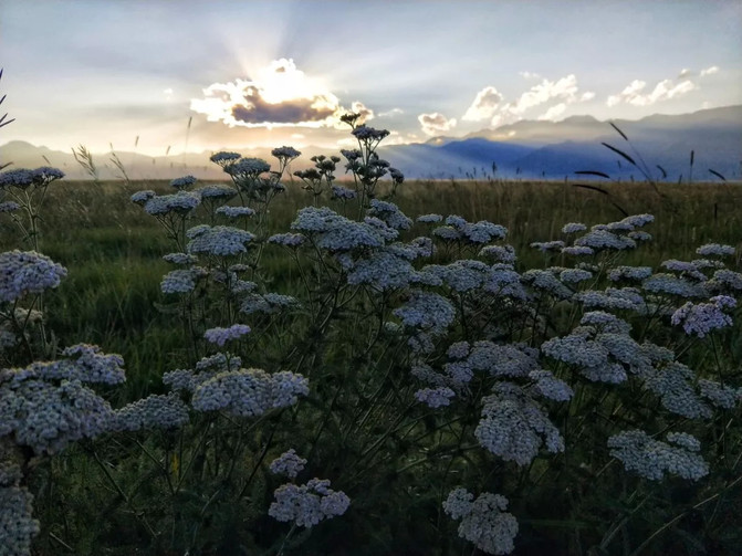 中午又到了蒙古包吃了很多好吃滴~新疆壮丽辽阔,路途实在是遥远。自驾游七个小时还没有走出一个县。那拉提草原上各种野花开遍山岗草坡,也是很著名的牧场,“那拉提”是蒙古语“太阳”的意思,我们去看牧谷炊烟。