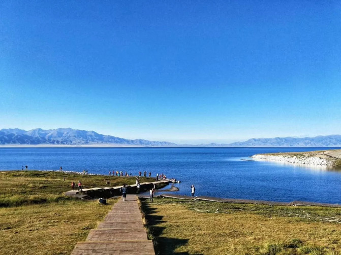 滴~5:40起床。为了看赛里木湖的日出,从星空满布的6点到8点等待日出,两个小时天色变化真美,湖水很冰凉,等待日出的游客也不少,日出瞬间只有短短的几分钟,一下子就出来了,让人很惊喜,昼夜温差大使新疆清晨很冷。