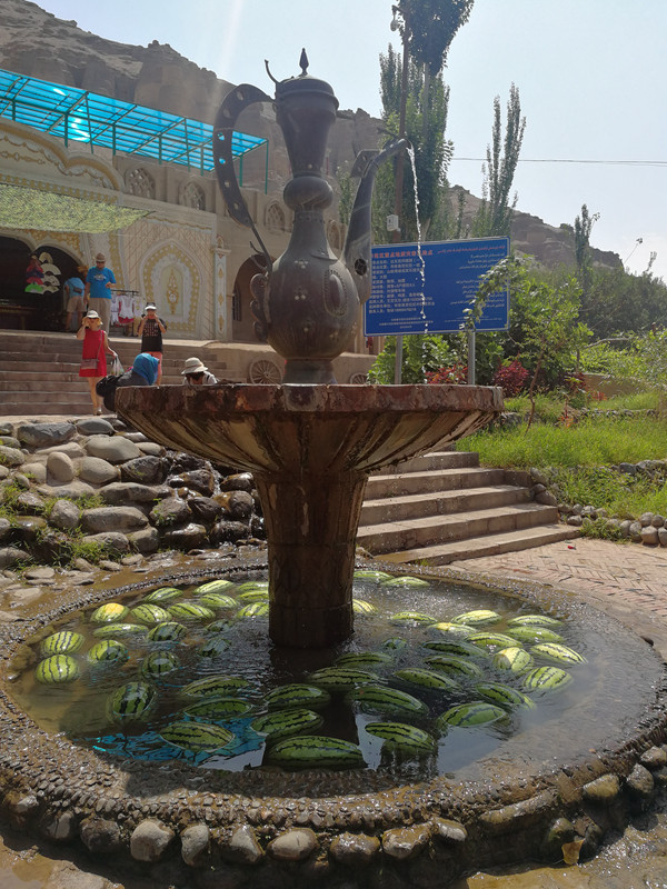 葡萄沟里面真舒服,我们重点走了葡萄沟民俗村、达瓦孜风情园和葡萄沟游乐园,阿凡提风情园被放弃了,王洛宾音乐艺术馆没开。葡萄架下凉风习习。在达瓦孜风情园里面中午一点半左右还有高空走钢丝的表演,不过表演场地很热,虽然有个看台棚子,但底下实在闷热。之后在景区里吃的西瓜是最近吃起来最爽的一次。
