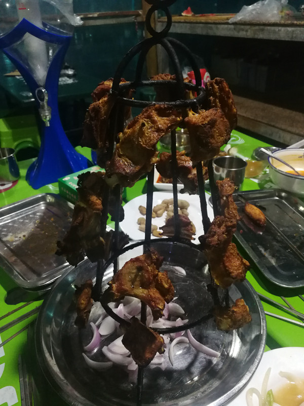 晚饭找了个农家乐烧烤,“良军烧烤”(成功街附近)。进院也支着一个安检门。羊排真棒,是在馕坑里烤出来的。自酿啤酒也还不错。汤饭(面片)很合口味。