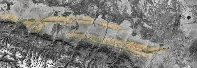 当我还在临出发之前的 上海 ,我曾通过卫星地图留意到了一处我很难用语言去描述的地方:此段山脉位于 新疆乌鲁木齐 市以西大概30KM处,它一直沿着 天山 以北延伸超过了130KM的距离。
