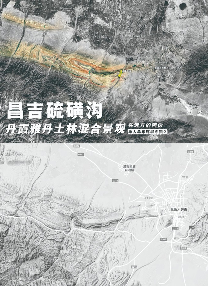 而 乌鲁木齐 以西的这段山脉在卫星地图上看,明显要比 张掖 来得更风骚嘛!但是它离 大城 市这么近,作为外地人的我咋就从来没在网上没听说过呢?