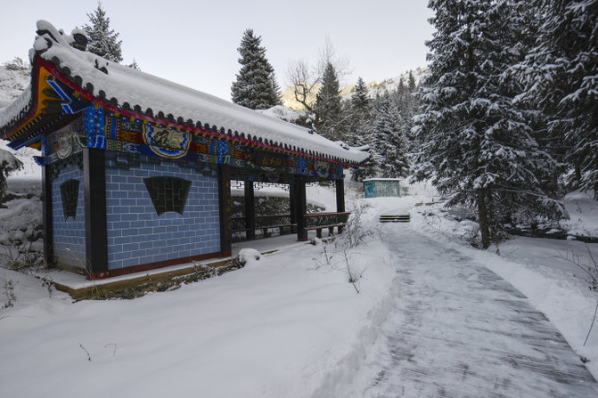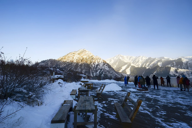 丝绸之路国际滑雪场坐落于天山山脉,距乌鲁木齐城南38公里处。我们驱车也就是四十分钟就到了丝绸之路国际渡假区。丝绸之路国际滑雪场地处天山北坡逆温带生态谷地,海拔1800米至2500米,占地12平方公里,是国内三大滑雪场之一。