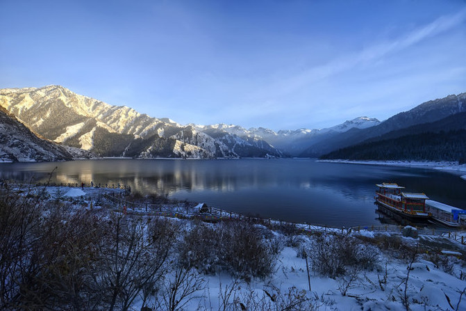 天池古称“瑶池”,地处天山博格达峰北侧,海拔1900多米,由高山融雪汇集而成。 位于阜康市南偏东40余公里,距乌鲁木齐市110公里。从乌市一个半小时车程可抵达。这是真是渡假的好地方,可以看风景,泡温泉,玩冰雪,还有一流的渡假酒店。