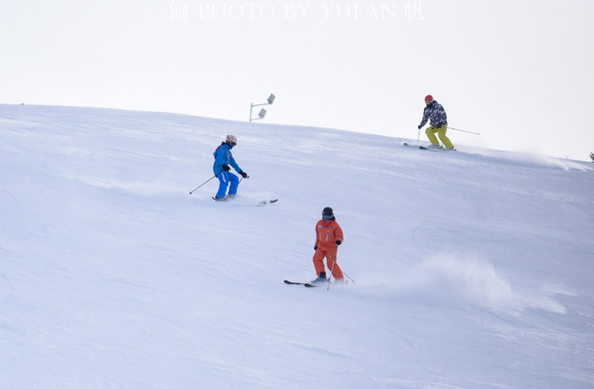 上山的过程中,渝帆遇到几位特别喜欢滑雪的外地朋友,他们说,天山的雪质极好,松散如絮,属于典型的粉雪,滑起来有唰唰的声音、溅起来像白砂糖一样,摔倒后顶多砸一个雪坑,却不会摔痛,滑行中,整个人会随着雪地的起伏而上下漂浮,如同飞翔一般。雪板划开雪面的感觉如同热刀切过黄油,如果你细心观察,板头会把最表层的一些雪撞飞,就像船头破浪掀起的浪花一样。