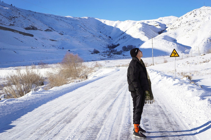 必须来组情侣照,木鱼瘦,所以给她拍近景远景都没问题,背靠雪山连绵,拍照时可以指导女朋友调整刘海、衣服、围巾和表情这些细节,毕竟女票哪边脸好看你肯定知道。