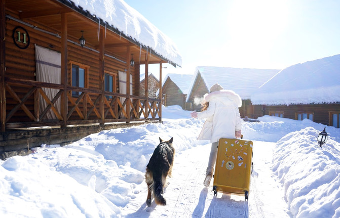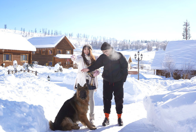 新疆 这是跟木鱼第一次来,但绝对不是最后一次,以后还要一起看它的春夏秋冬。最后给木鱼在 禾木的度假村拍了张照片,还有个大狼狗一直跟着她,哈哈哈哈,有爱。