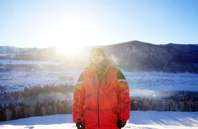禾木 的雪地摩托抵达 禾木 时才知道这里有零下-40°!!赶紧来顿火锅暖身子,木鱼特别爱吃牛羊肉,吃了超多,估计得胖个5斤吧。第二天早上8、9点,在当地人带领下穿好防寒服,就坐上了雪地摩托,一路奔驰到山顶!!!