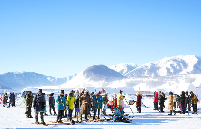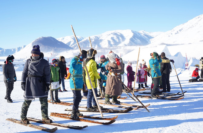 看完日出下山,开雪地摩托10几分钟,就到雪乐园,这才是当地人的娱乐大世界。雪圈、滑雪、摔跤、爬犁子….正好赶上有当地人滑雪,感觉穿着当地服装比赛特别酷。