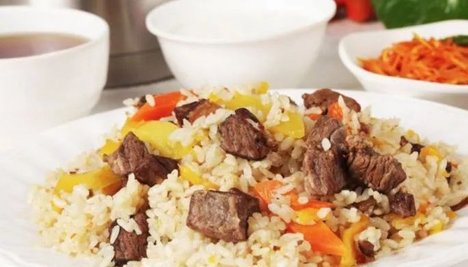 这家的抓饭是风干肉和米一起焖熟的,带有特殊香味的风干肉渗入了米香,水分恰到好处的大米中又吸收了肉的醇香。