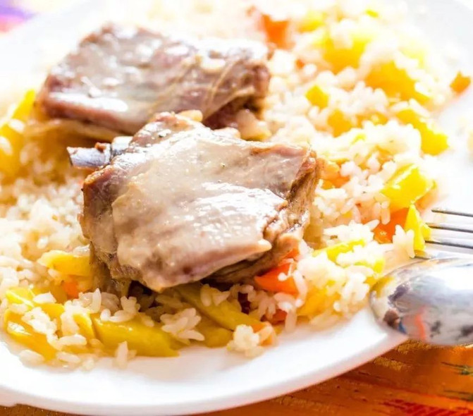 超嫩的羊排,嫩到你可以像吃拉条子一样把肉从骨头上吸溜下来,特别是羊排上的那一口肥肉!肥而不腻,入口即化,满嘴喷香,鲜嫩的油脂随着牙齿的咀嚼逐渐占领整个口腔,这时候赶紧吃一大口抓饭。