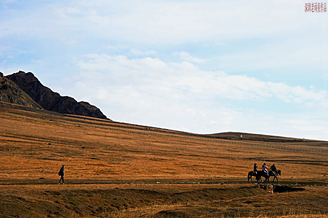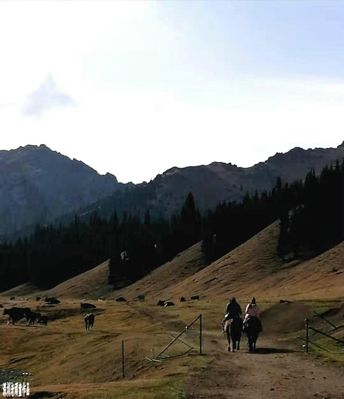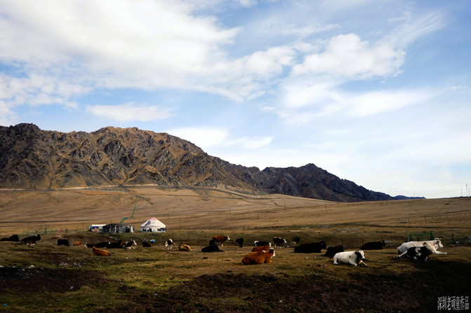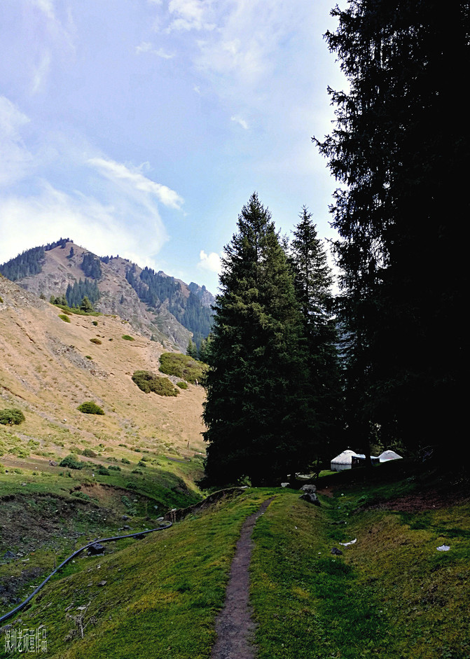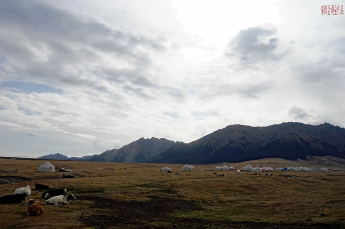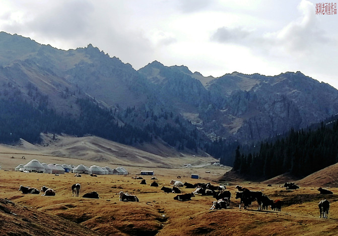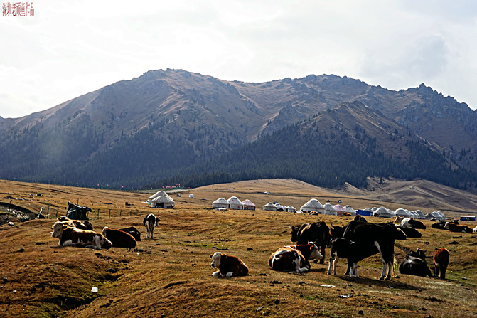 进入景区后,坐上区内摆渡车直奔最重要景点《天鹅湖》。每个景点都有人为编写的美丽传说,天鹅湖--情人的眼泪,凄美而浪漫的故事,暂且不说了。雄伟的天山,广袤的草原,宁静的湖泊,哈萨克毡房,白色的炊烟,遍地的牛羊组成了一幅天山山脉北坡景色。天山大峡谷与库车大峡谷有着截然不同的两种风格,一个是以高山云杉牧场景观为主,而另一个则是以红色雅丹地貌为主。眼前所见到的一切,不由自主让人想起上个世纪八十年代轰动一时的电影《牧马人》和《天云山传奇》片中的场景。明月出天山,苍茫云海间。