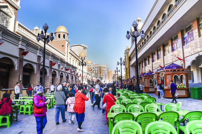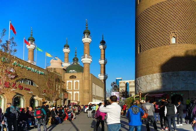 大巴扎就是集市、市场的意思,这个国际大巴扎是 新疆 最大的大巴扎,也是世界之最,如今已经开发成景点,成为了 乌鲁木齐 旅游的重要一站,几乎来到 乌鲁木齐 旅游的人都来过这里,感受下贸易繁华的场景。
