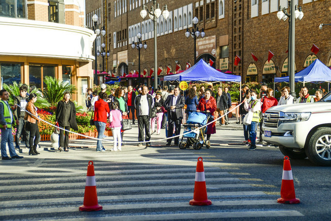 大巴扎里过马路很有特色,没有红绿灯,人工用绳子控制