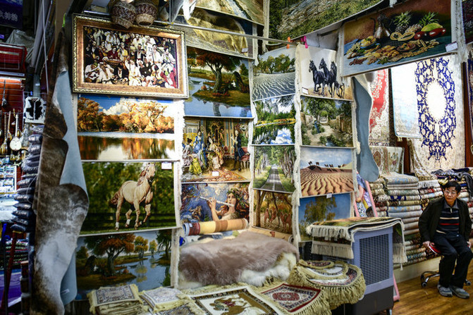 这里有服饰、布艺、地毯、秘药、土特干果、手工艺品、百货和玉器珠宝等 八大专业市场
