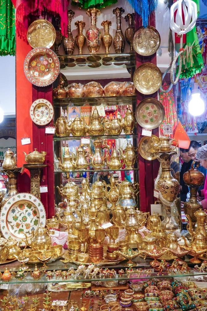 编织毯,手鼓,热瓦甫(维吾尔族的乐器之一)之类的小纪念品,琳琅满目,但是价格也不便宜,不是真心想买的话,不要轻易还价,还价了不买很不礼貌。